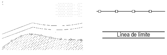 Ahora bien, no se trata de aplicar distintos tipos de línea a los objetos sin ningún criterio. De hecho, como pudo observar en los nombres y descripciones de los tipos de líneas en la ventana del «Administrador de tipos de línea», muchos de los tipos de línea tienen fines específicos muy claros en las distintas áreas del dibujo técnico. Por ejemplo, en un dibujo de ingeniería civil, puede ser muy útil el tipo de línea para mostrar instalaciones de gas. En el dibujo mecánico, las líneas ocultas o de centro se utilizan constantemente, etcétera. Lo siguientes ejemplos muestran algunos tipos de líneas y su uso en el dibujo técnico. De hecho, el usuario de Autocad debe conocer para qué se usan los distintos tipos según el área para la que dibuje, ya que éstos conforman todo un alfabeto de líneas.