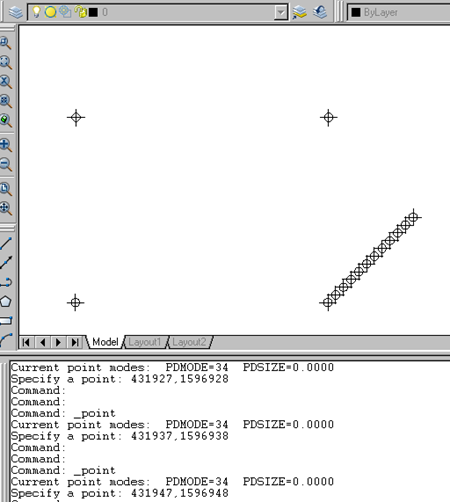 - Ahora en AutoCAD escribimos el comando Point, (Draw/point/multiple point)