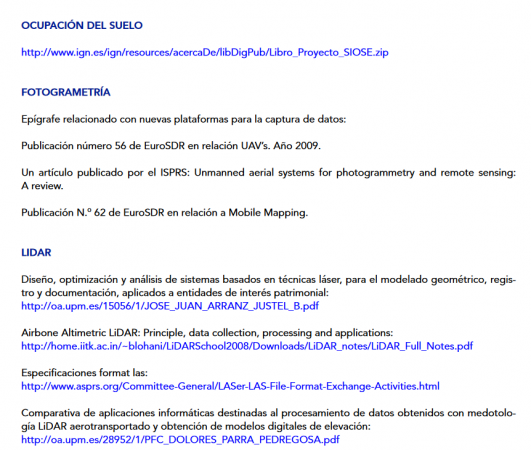 c-3) Ingenieros Geógrafos: Temario básico y Bibliografía (año 2008). Esta área consta del temario básico y la bibliografía recomendada a fin de ayudar en la preparación para obtener las oposiciones como Ingeniero Geógrafo. Revisando la Bibliografía se puede encontrar acceso a diferentes documentos publicados en Internet. Los que deseen repasar conceptos quedan invitados para una revisión exhaustiva: