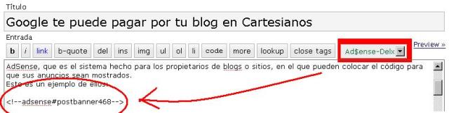 -Hay uno llamado «top cartesia», ese es el que ves en la parte superior del blog, para cambiarlo seleccionas «edit» y copias un código generado en tu panel de AdSense